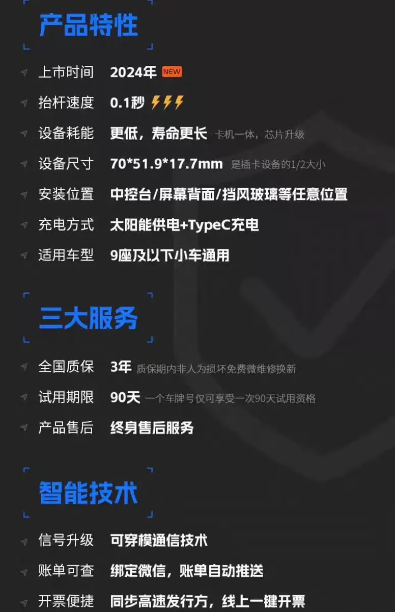 设备全国通行,通行费95折起,办理无押金,无违约金,无合约期,国企发行没任何其他隐藏费用.一次预约终身在线客服及时服务!